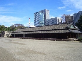 旧江戸城の正門。大名はここから登城していた。慶長11年(1606)藤堂高虎の設計。寛永6年(1629)の工事は、酒井忠世が分担。左右の石垣は、伊達政宗が築造した。