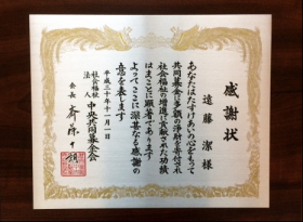 遠藤 潔は、2018年11月1日 社会福祉法人中央共同募金会(以下「中央共同募金会」)より会長感謝楯を受賞致しました。