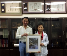 遠藤潔 第十八代遠藤宗家は、再従姉である内海義子 示現会会員・画家より絵画「孤舟」を拝受した。