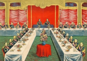 饗宴の儀は、国事行為として行われる「即位の礼」の儀式の1つで、合わせて4回行われることになっている。天皇陛下は燕尾服を着用し、大勲位菊花章頸飾・大綬章と桐花大綬章・正副章、また時には瑞宝大綬章の副章も合わせた計5点の勲章を佩用する。