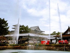※画像:法隆寺で行われた放水訓練