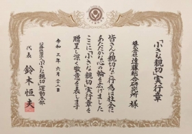 「小さな親切」運動本部より有功章・代表表彰状を受賞