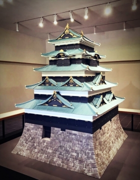 天守模型は確かな時代考証に基づいて、30分の1の大きさで制作された。高さ2メートルほどで、最上部には金の鯱が輝いている。また、石垣の上には、銅瓦の屋根や飾り金具がついた破風などの装飾が再現され、華やかな造りとなっている。
