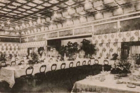16、17日には、二条離宮(二条城)で大饗の儀が開催された。大饗の儀は、収穫された新作物を天皇より賜る節会(せちえ)、つまり収穫祝いのお振る舞いの宴会である。16日の大饗第一日には、各地方の特産物による和食が供された。その際に、銀製の挿華が列席者に下賜された。古代において臣下たちは冠に花を挿して、天皇の前にて舞い踊った。その花を挿華と呼んだ。平安時代以降は、天皇即位の際に、台に載せた造花が飾られるようになった。それも挿華と言った。大正天皇の即位にも大きな銀製挿華が献上され、そのミニチュア版が列席者にも下賜されたのである。挿華の制作下賜の慣習は、昭和、平成、令和にも受け継がれている。
