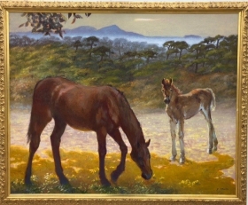 内海義子氏の所属する示現会は、47年、戦後の混乱と困窮の中、石川寅治・三上知治・奥瀬英三を中心に、楢原健三・大内田 茂士・奈良岡正夫を初めとする31名によって具象絵画団体が設立された。