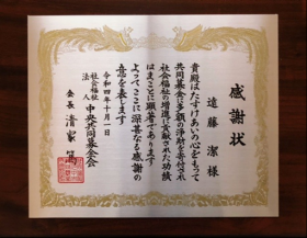 遠藤 潔は、2022年10月1日 社会福祉法人中央共同募金会(以下「中央共同募金会」)より会長感謝楯を受賞致しました。