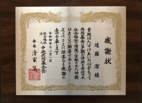 遠藤 潔は、2022年12月1日 社会福祉法人中央共同募金会(以下「中央共同募金会」)より会長感謝楯を受賞致しました。