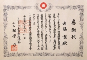 遠藤 潔は、2016年11月1日 公益財団法人日本水難救済会(以下「日本水難救済会」)より有功章・会長感謝状を受賞致しました。